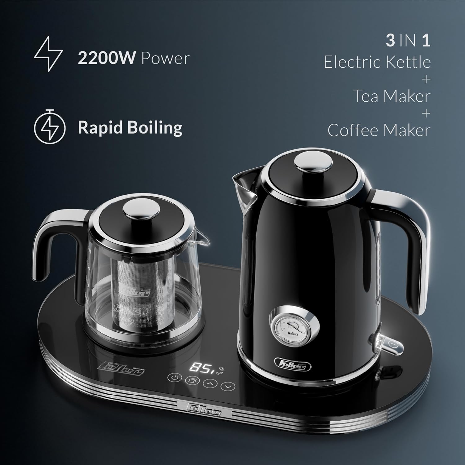 چای ساز فلر مدل TS490، از سری محصولات کنارهمی برند معتبر فلر، یک دستگاه پیشرفته و چندکاره است که با طراحی مدرن و ویژگیهای ایمنی بالا، دم کردن چای و دمنوش را به تجربهای سریع، دقیق و لذتبخش تبدیل میکند. این مدل با ترموستات Strix بریتانیایی و نمایشگر لمسی LED، امکان تنظیم دما برای انواع چای (سبز، سیاه یا دمنوش) را فراهم میآورد.