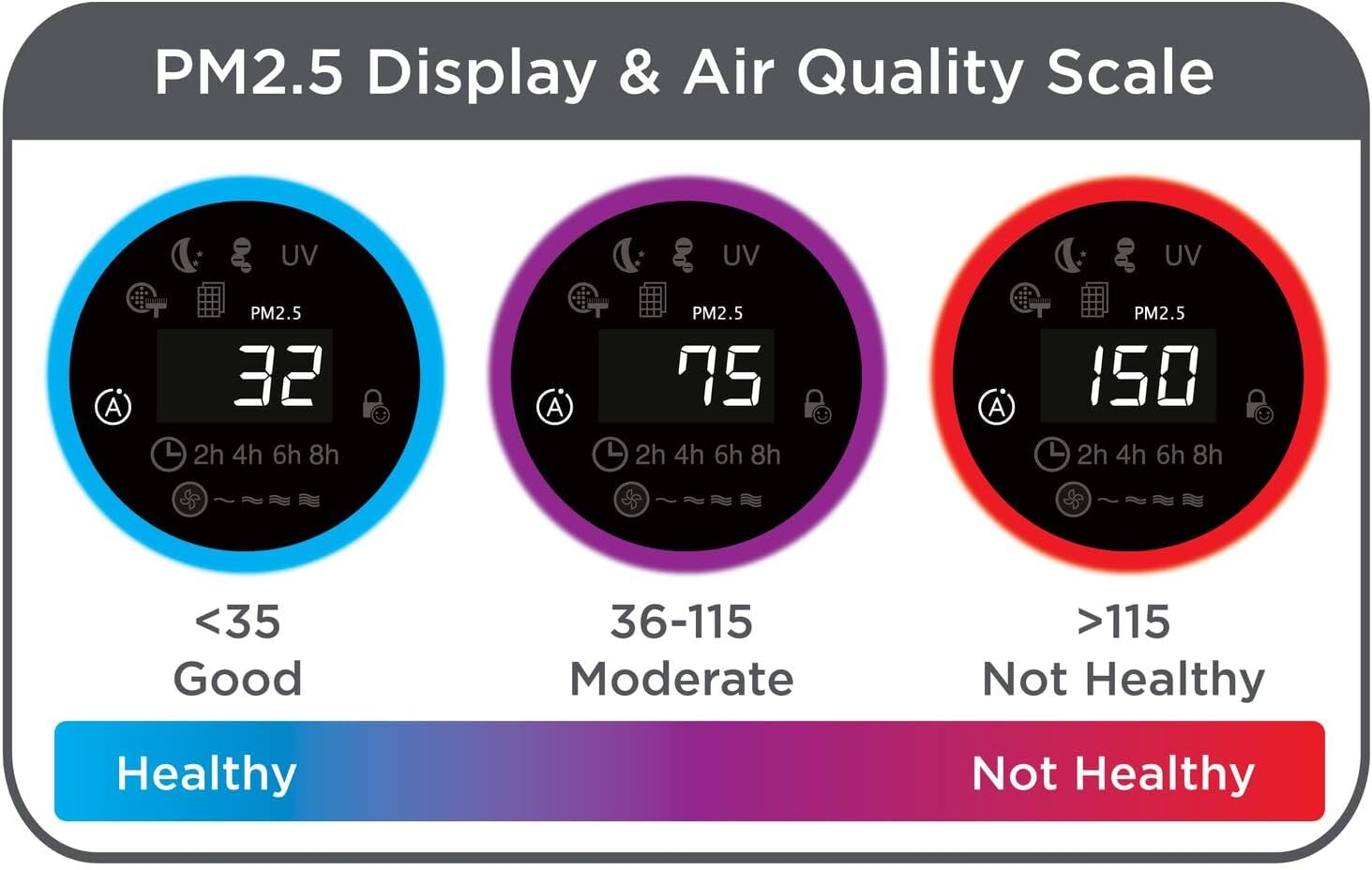 سنسور کیفیت هوا PM2.5، نمایشگر دیجیتال با حلقه رنگی LED برای نشان دادن کیفیت هوای واقعیزمان (رنگها: سبز برای خوب، زرد/قرمز برای متوسط/ضعیف).