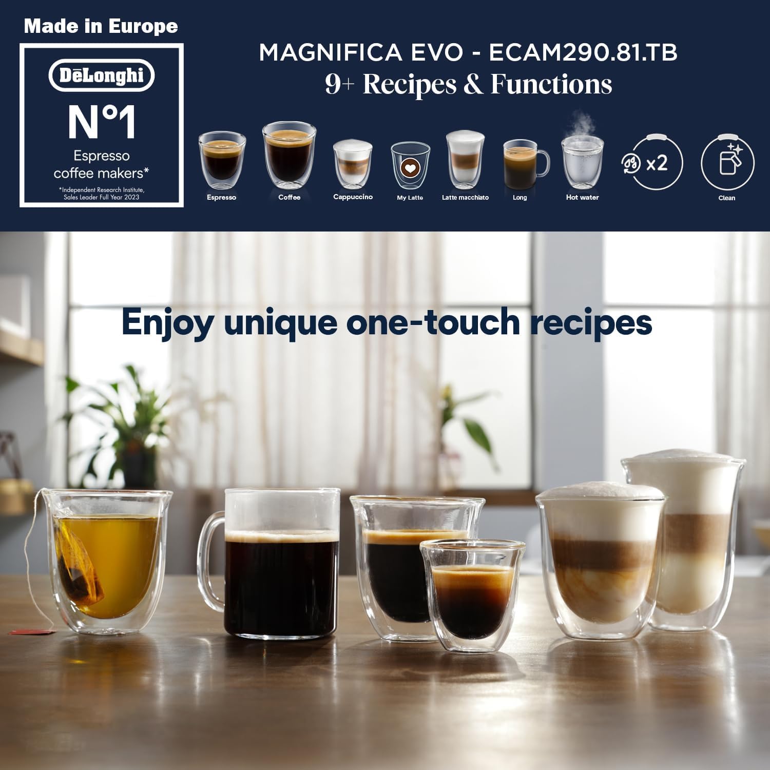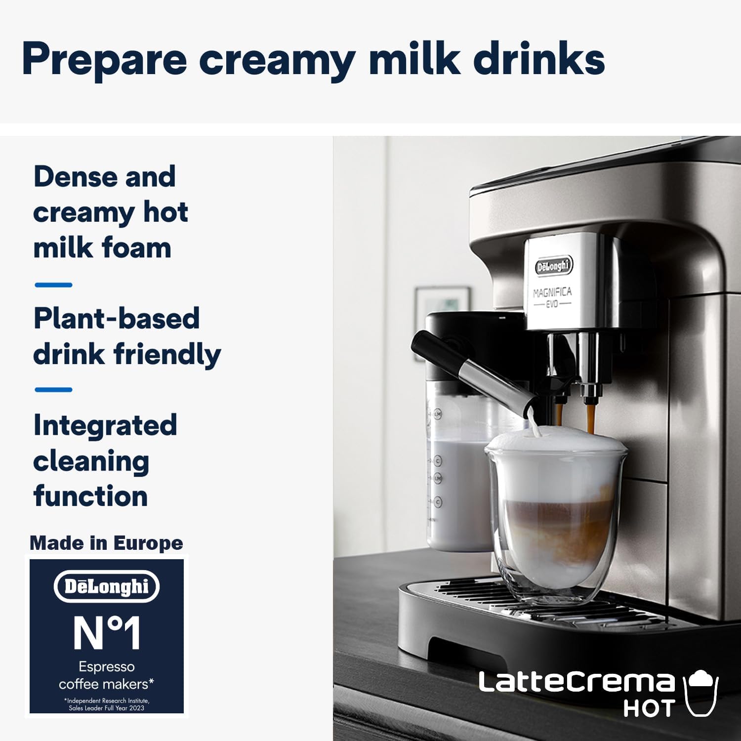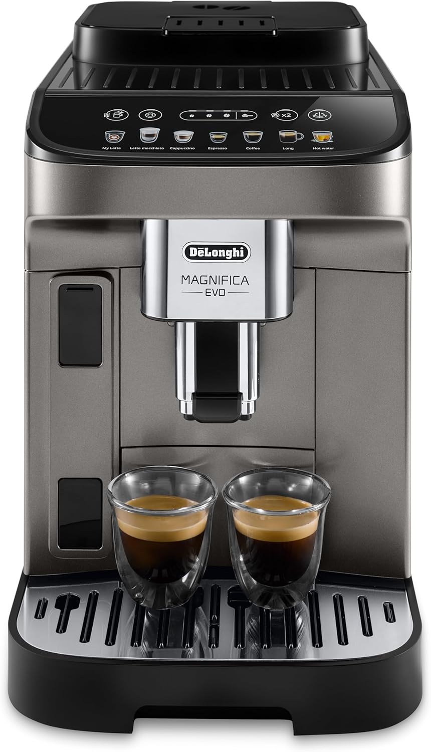 اسپرسوساز دلونگی مدل ECAM290.81.TB از سری Magnifica Evo یک دستگاه تماماتوماتیک پیشرفته و کاربرپسند است که برای علاقهمندان به قهوه طراحی شده و تجربهای حرفهای از تهیه اسپرسو، کاپوچینو و لاته را در خانه فراهم میکند. این مدل با طراحی شیک و کامپکت به رنگ تیتانیوم مشکی، به راحتی در آشپزخانههای مدرن جای میگیرد و با فناوریهای نوین مانند آسیاب سرامیکی و سیستم LatteCrema، طعم غنی و کرمی قهوه را استخراج میکند. پنل کنترل نرم لمسی با آیکونهای رنگی اختصاصی، انتخاب آسان نوشیدنیها را ممکن میسازد و قابلیت تنظیم حجم، دما و غلظت قهوه، آن را برای سلیقههای مختلف ایدهآل میکند. دلونگی با تمرکز بر کیفیت ایتالیایی، دوام بالا و تمیزکاری خودکار، این دستگاه را به گزینهای عالی برای استفاده روزانه تبدیل کرده و تا ۷ نوع نوشیدنی مختلف را با یک دکمه آماده میکند