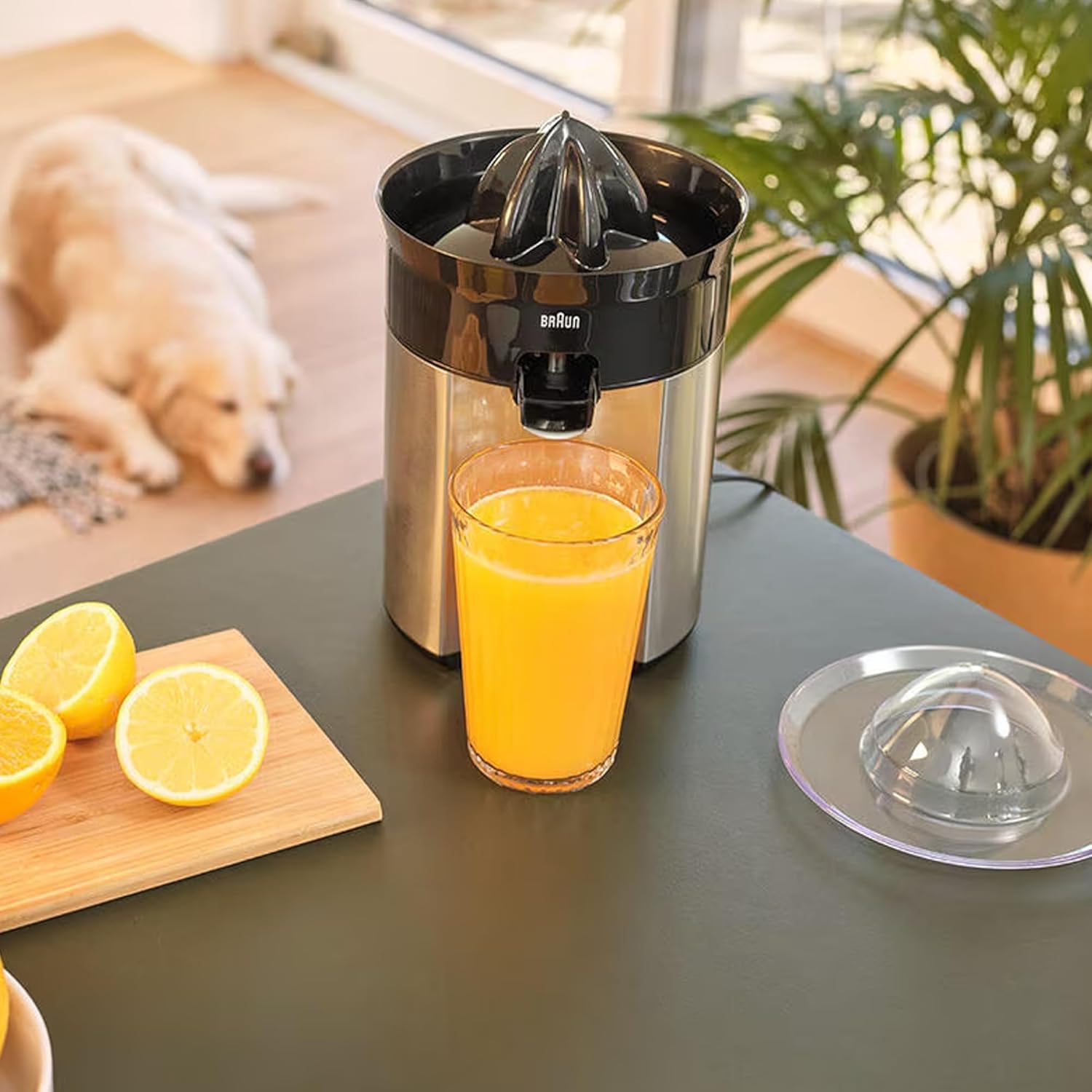 آب مرکبات گیر براون مدل CJ5050 از سری CitrusQuick 5، دستگاهی شیک و کارآمد برای تهیه آب میوه تازه از انواع مرکبات است که صبحانههای سالم و سریع را به آشپزخانه شما میآورد. این مدل با طراحی استیل ضدزنگ براق و بدنه مقاوم، نه تنها عملکردی قدرتمند ارائه میدهد، بلکه زیبایی مدرنی به فضای آشپزخانه اضافه میکند. با قابلیت سرو مستقیم آب میوه در لیوانهای بلند تا ارتفاع ۱۴ سانتیمتر، تازه، سریع و بدون دردسر!