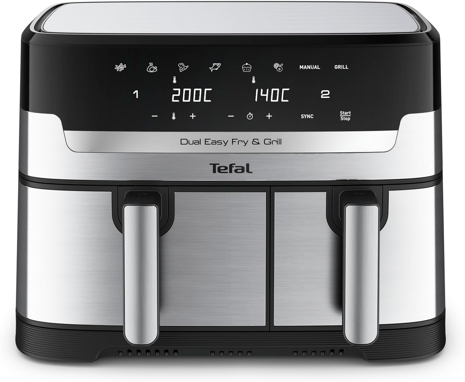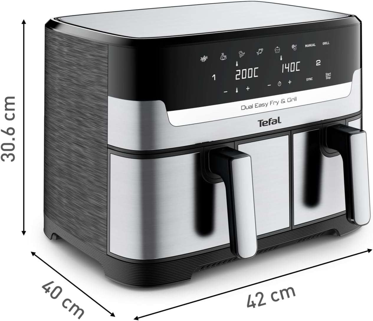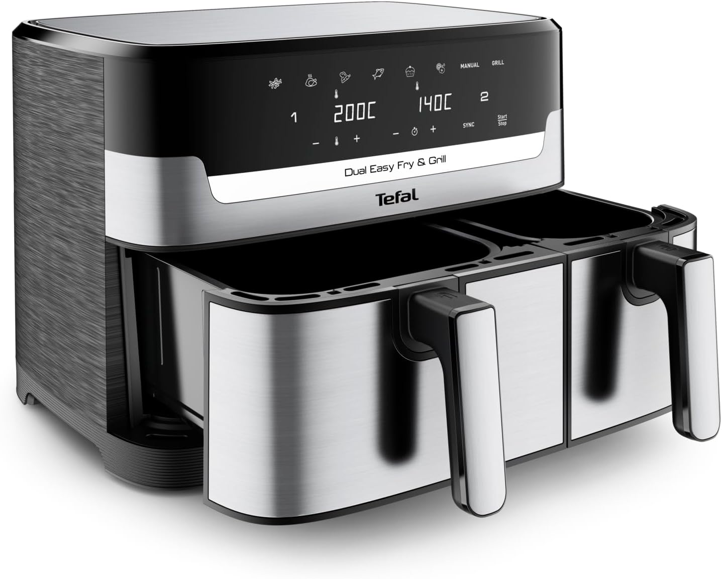 سرخکن تفال EY905D40 یک دستگاه دو سبد است که برای پخت غذاهای مختلف بدون روغن یا با روغن کم طراحی شده. این مدل دو سبد با اندازههای متفاوت (۳.۱ و ۵.۲ لیتر) دارد که میتوان آنها را جداگانه یا همزمان استفاده کرد و زمان پخت را همگامسازی میکند. مناسب برای خانوادههای متوسط تا بزرگ، با برنامههای آماده و بدنه استیل ضدزنگ و قطعات قابل شستشو در ماشین ظرفشویی.