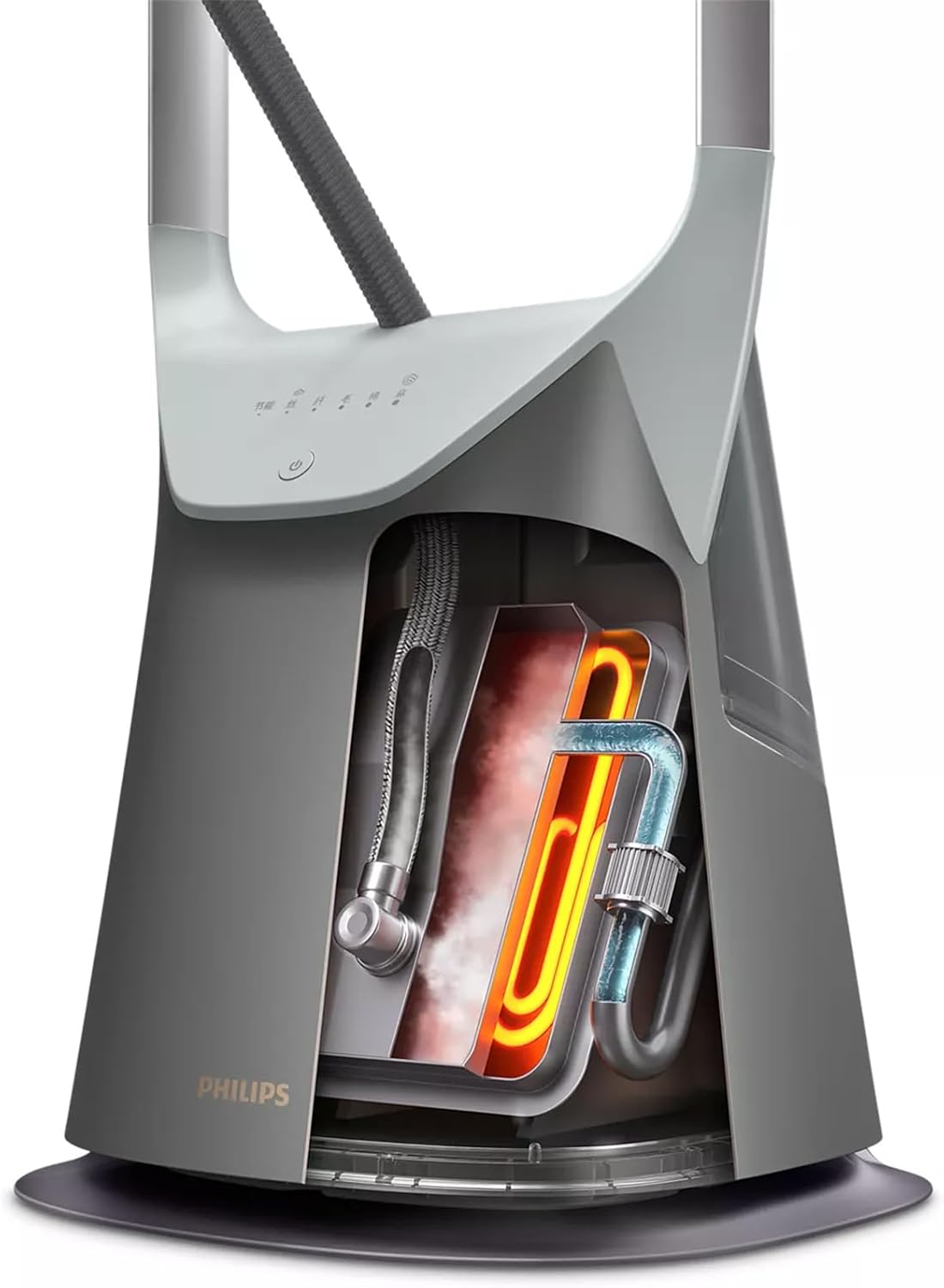 فناوری دوگانه گرمایش (Dual Heating): بخار نفوذکننده قدرتمند برای رفع سریع چروکهای مقاوم.